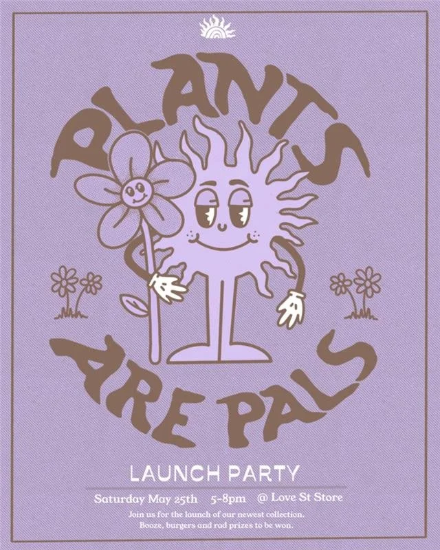 Rise Against Division reached out for designs for their new collection, Plants are Pals. I took the tees to where they deserve to go - Zion National Park, USA to create a collage for socials and the collection landing page. I illustrated a funky character for RAD that features on the Surf St Tee, their thank you cards and on their collection party poster.